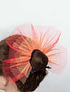 Adereço de puxo, 3 folhos de tule, em gradiente de cor.