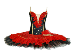 Base em preto e ornamentos vermelhos - perfeito para a interpretação de personagens como KITRI (Bailado D. Quixote).