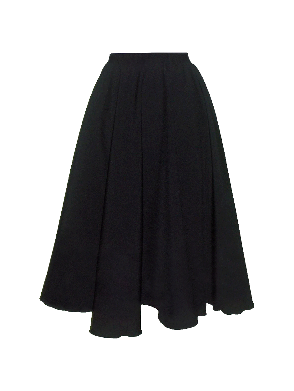 Saia de carácter, cinto elástico e bainha com remate delicado.