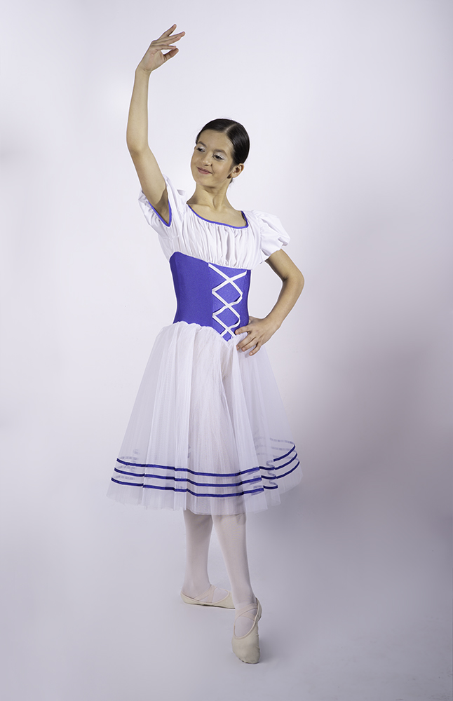 Tutu romântico.Peito e manga balão em tecido de cor Branca.