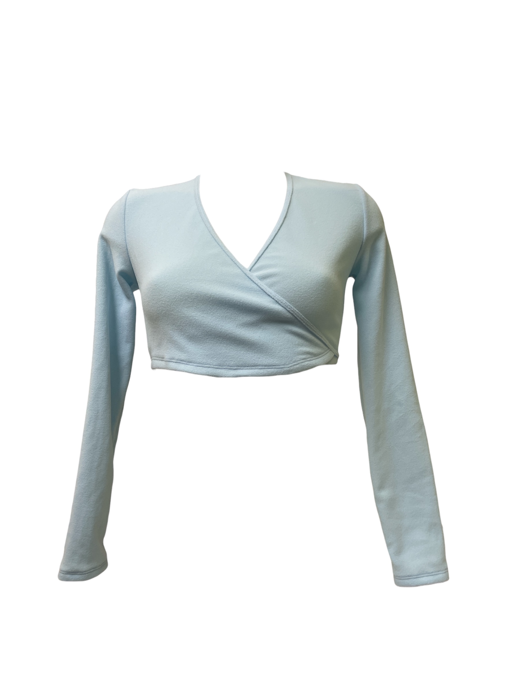 Casaco de trespasse curto (abaixo peito) em malha polar.