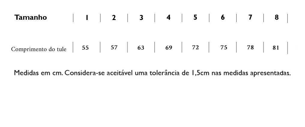 Do tamanho 1 ao 8. Consulte o Guia de Tamanhos.